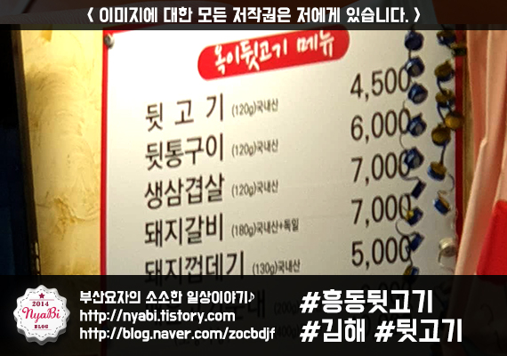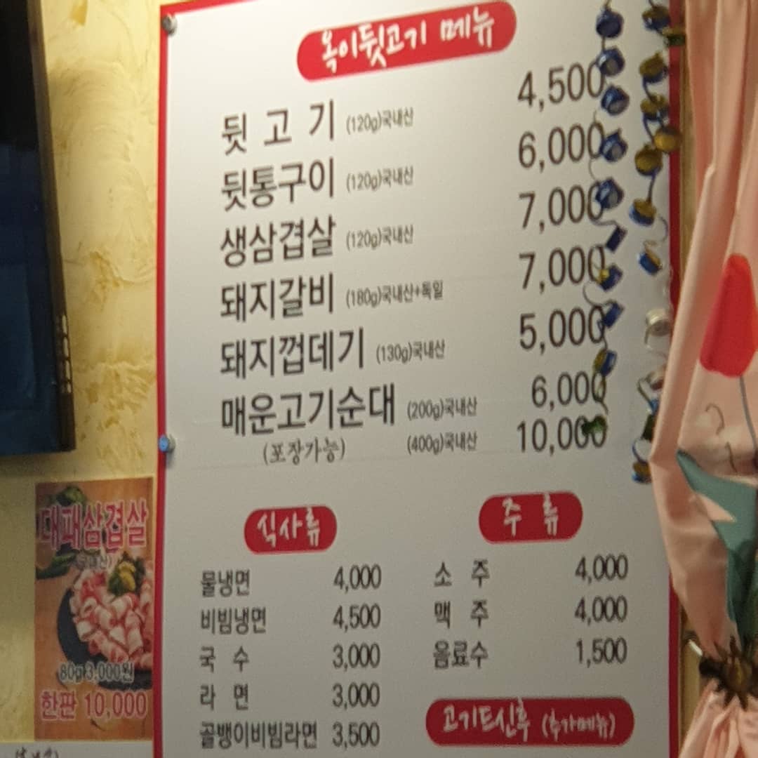 메뉴는 전부 돼지 고기인데, 저는 그중에 뒷고기가 디테일이 ㅋㅋㅋ
